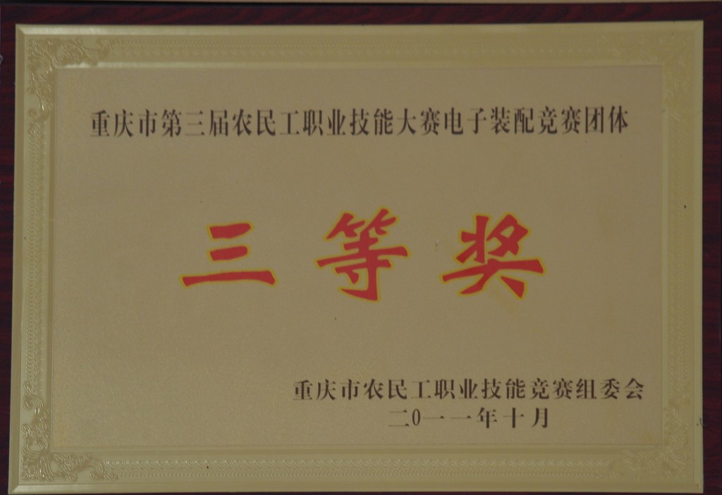 第三届农民工职业技能大赛电子装配竞赛团体三等奖