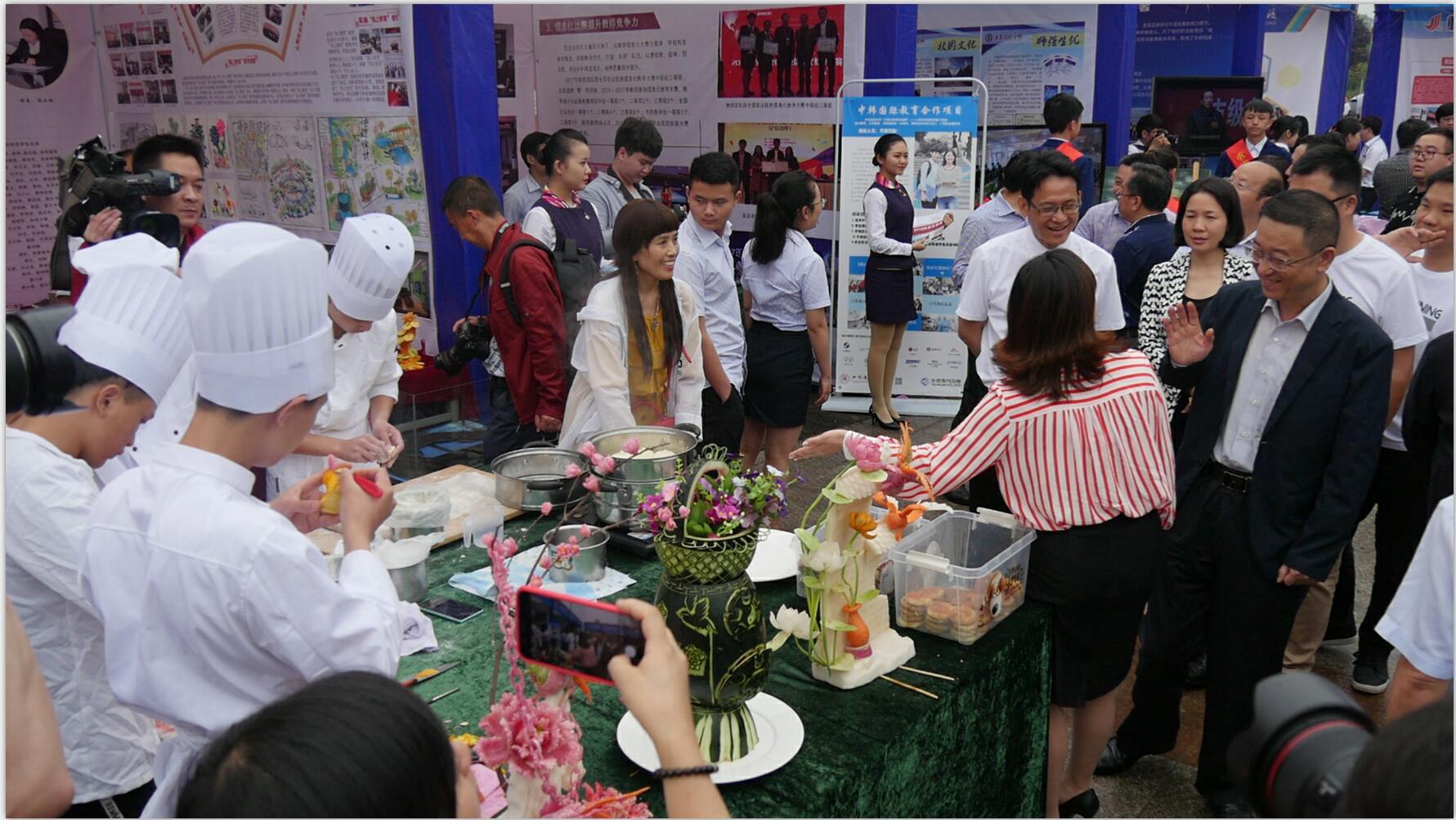 我校派出了以吴南川校长为领队的强大的参展团队,在活动中展出了我校烹饪、汽修、电子技术、平面设计、酒店管理、模具制造等专业的教学改革成果。其中我校烹饪专业的果蔬雕刻和面点制作,获得了业内人士及专家的一致好评。本次成果展示活动对我校今后一定时期的教育教学改革,具有巨大的指导意义。