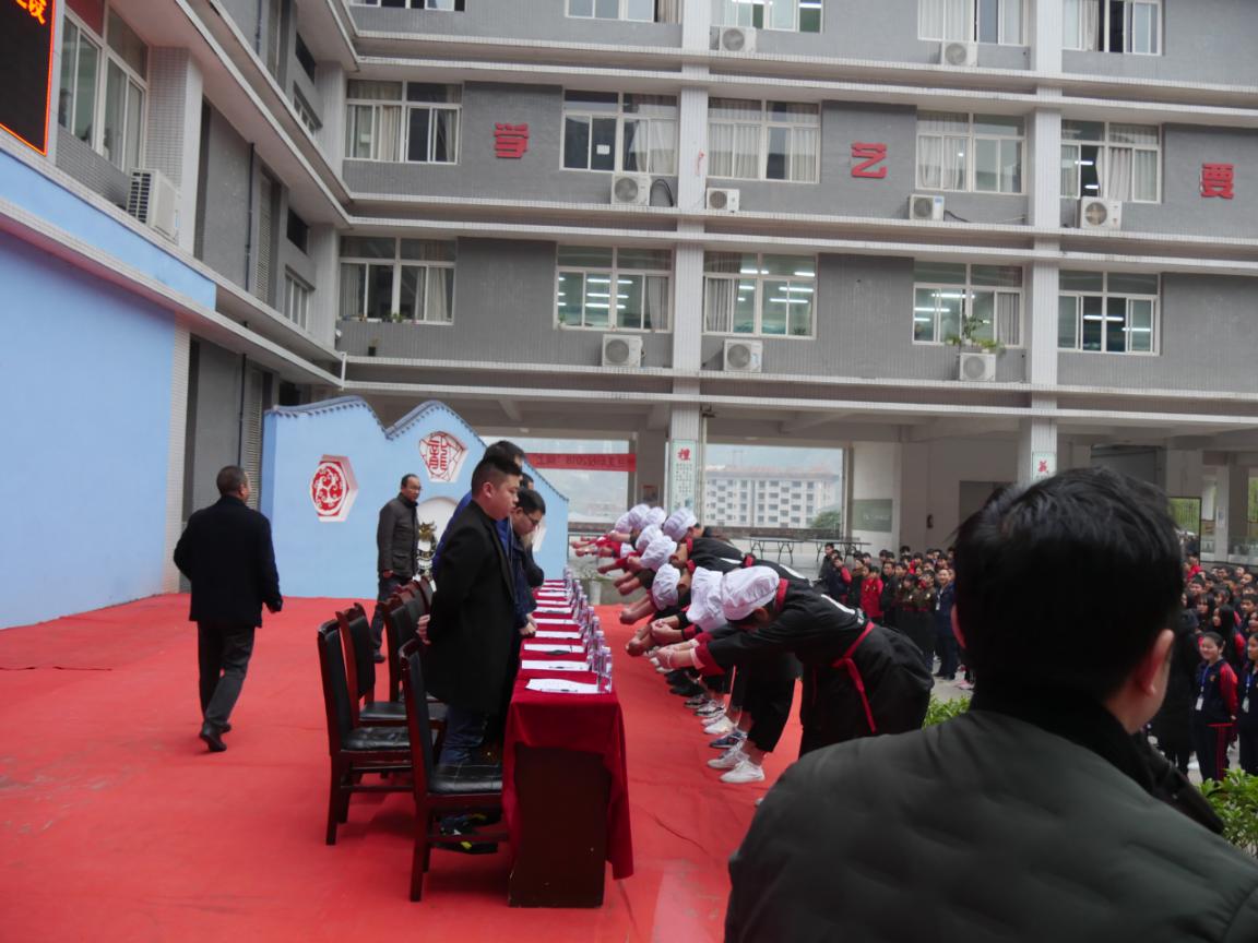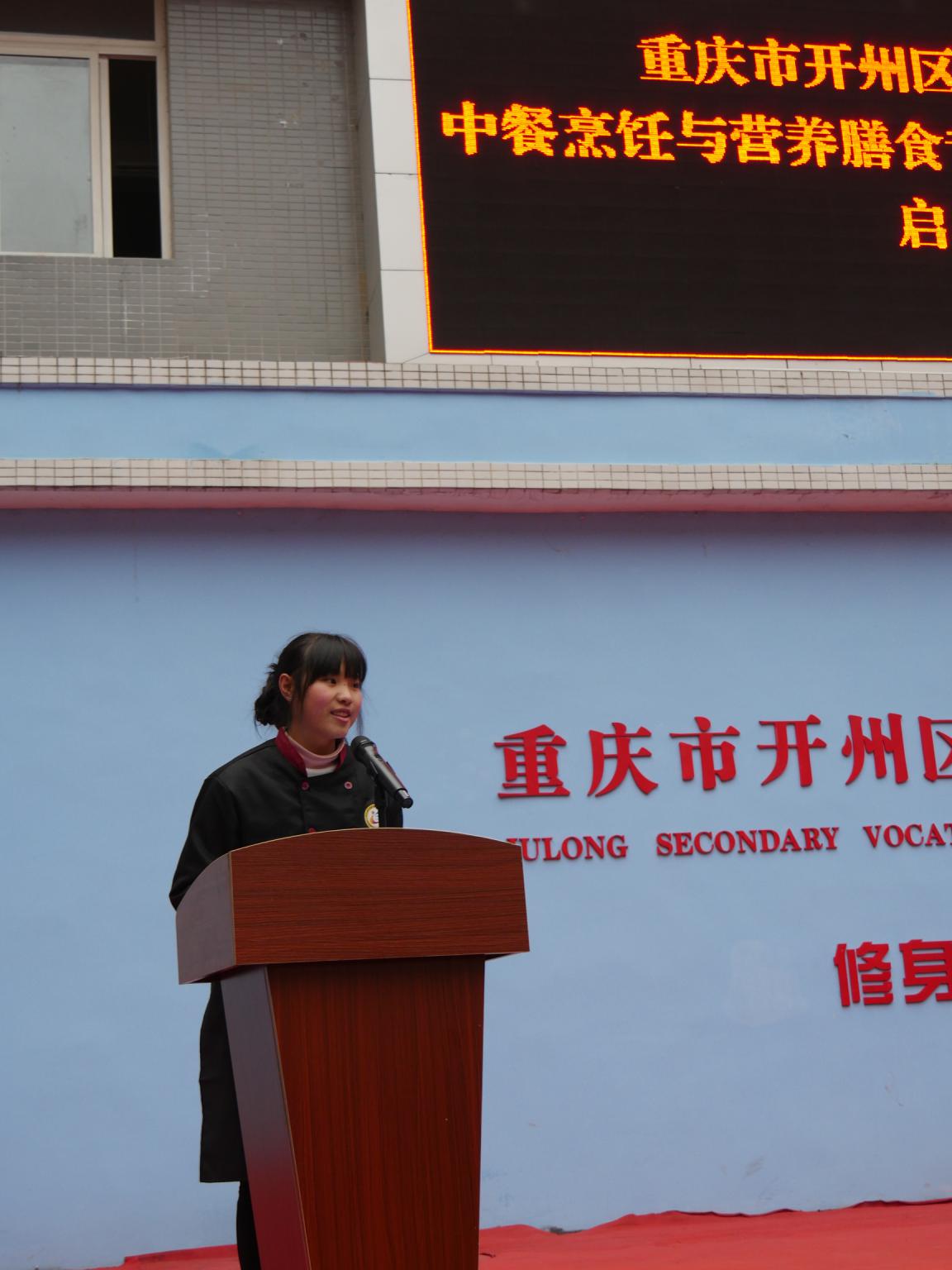 学生胡思佳代表烹饪专业全体学徒发言,表示在学艺时一定真心诚意地接受师傅们指导和学校领导的督促,,学以致用,勤学、勤问、勤看、勤听、勤动手,一定不辜负师傅们的希望与厚爱,一定不辜负学校的关爱和培养,力争早日成才,服务社会,报效人民。