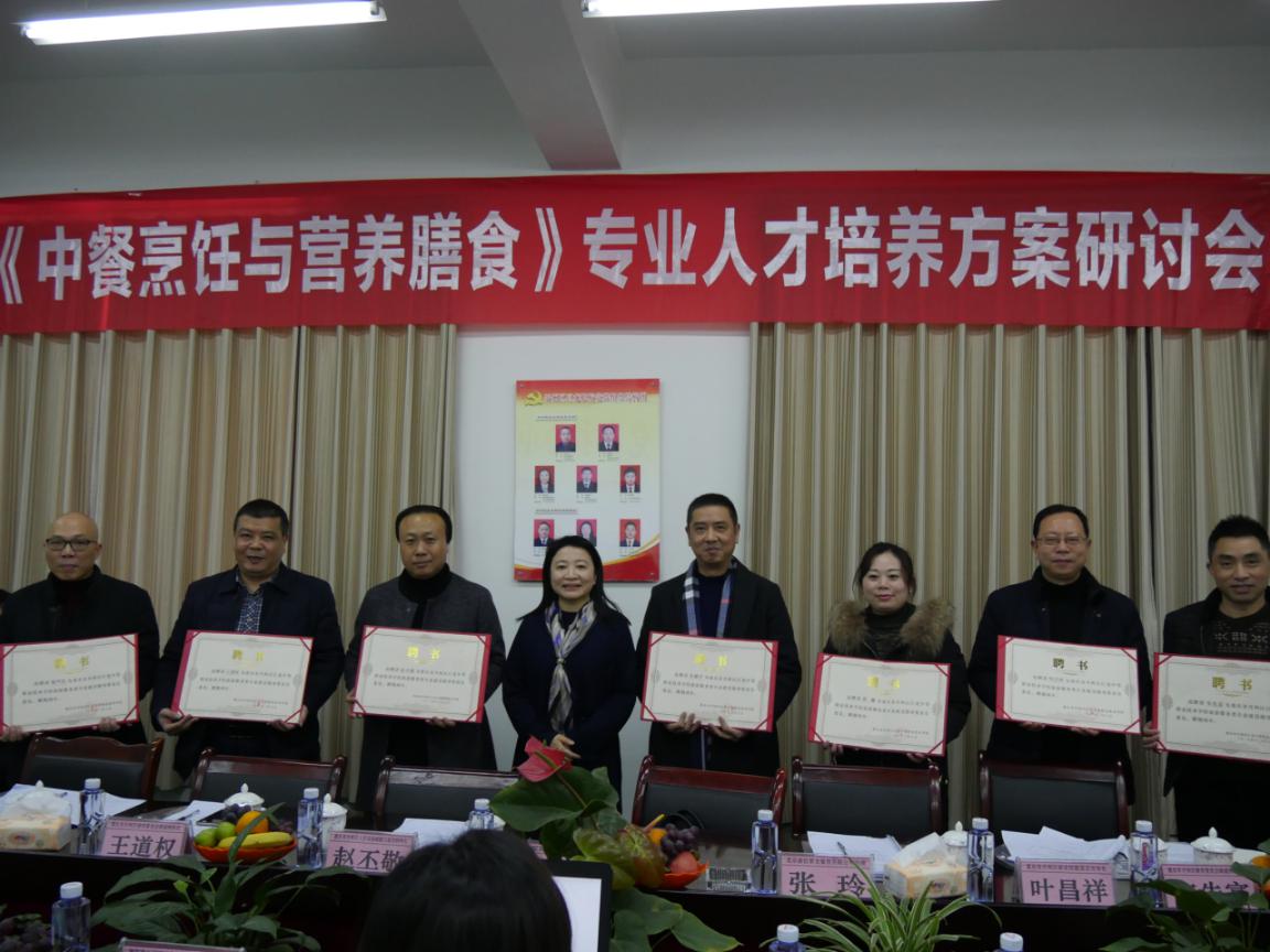 启动仪式之后举行了“中餐烹饪与营养膳食专业现代学徒制”专业人才培养方案研讨会,上述领导和企业代表及相关专家全部出席。