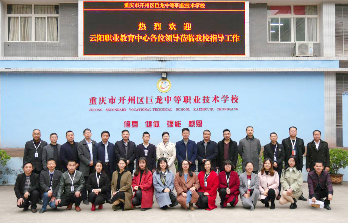 2019年11月20日,虽然时值初冬,天气寒冷,但是,在巨龙校园里却洋溢着热情和欢乐,今天我校迎来了来自远方的朋友—云阳县教委领导、云阳县职教中心行政领导及部分教师代表。