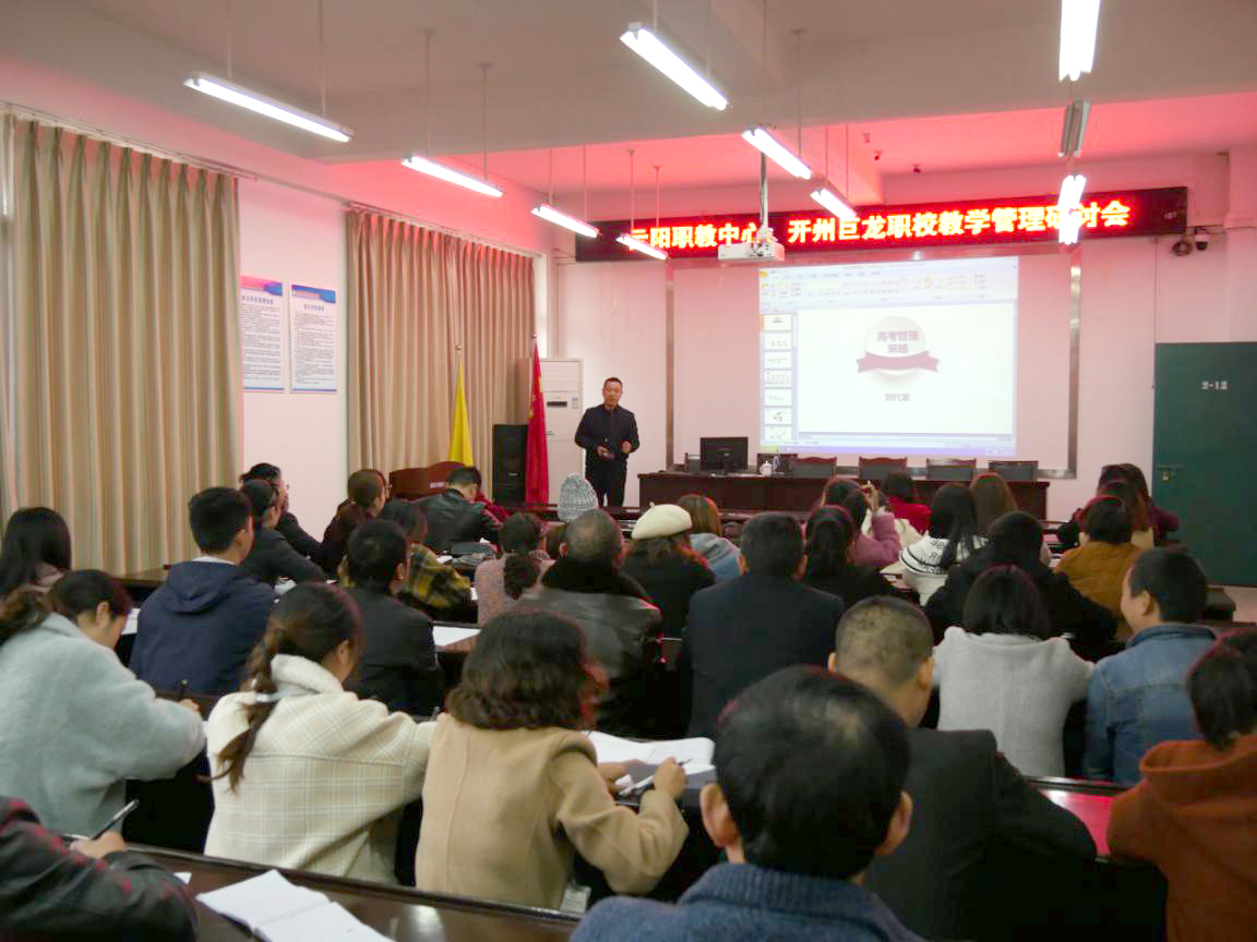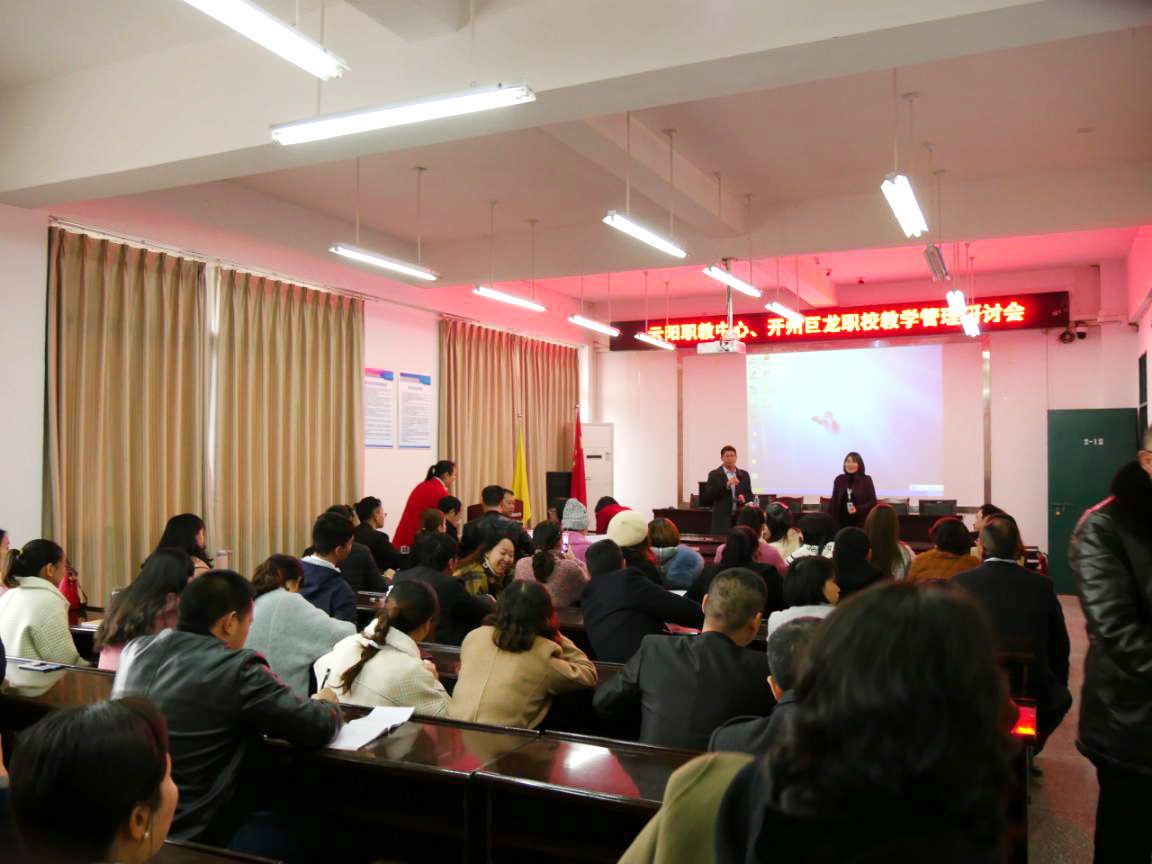 示范课之后,举行了教学管理研讨会。会议由我校教务处樊声元主任主持,云阳职教中心教务处主任刘代发,教科室刘华作了中心发言。