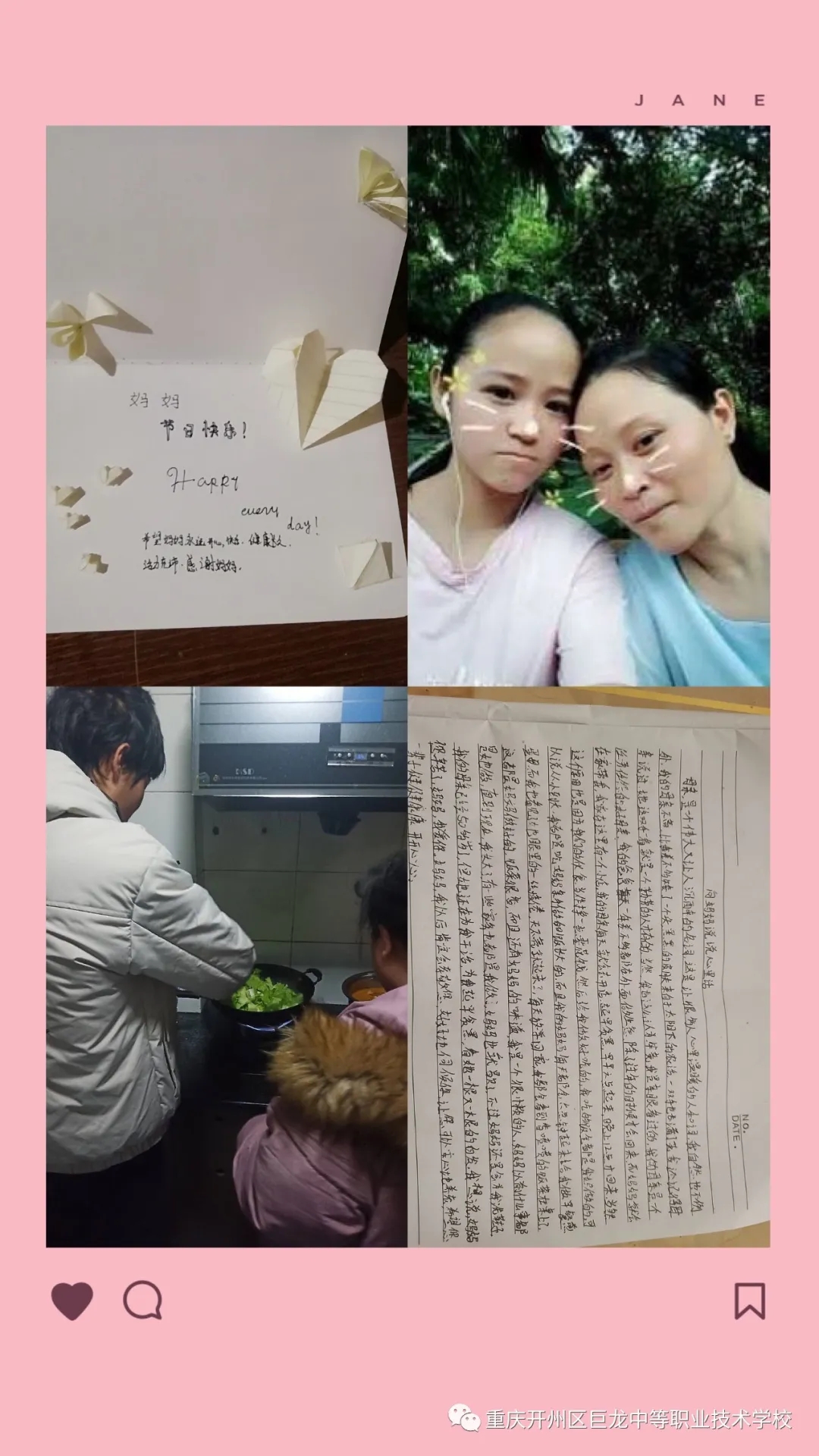而学生们则在疫情期间宅在家利用可用素材,力所能及地向妈妈们表达了节日的问候与祝福,展现了巨龙学子孝敬父母的优良传统美德。