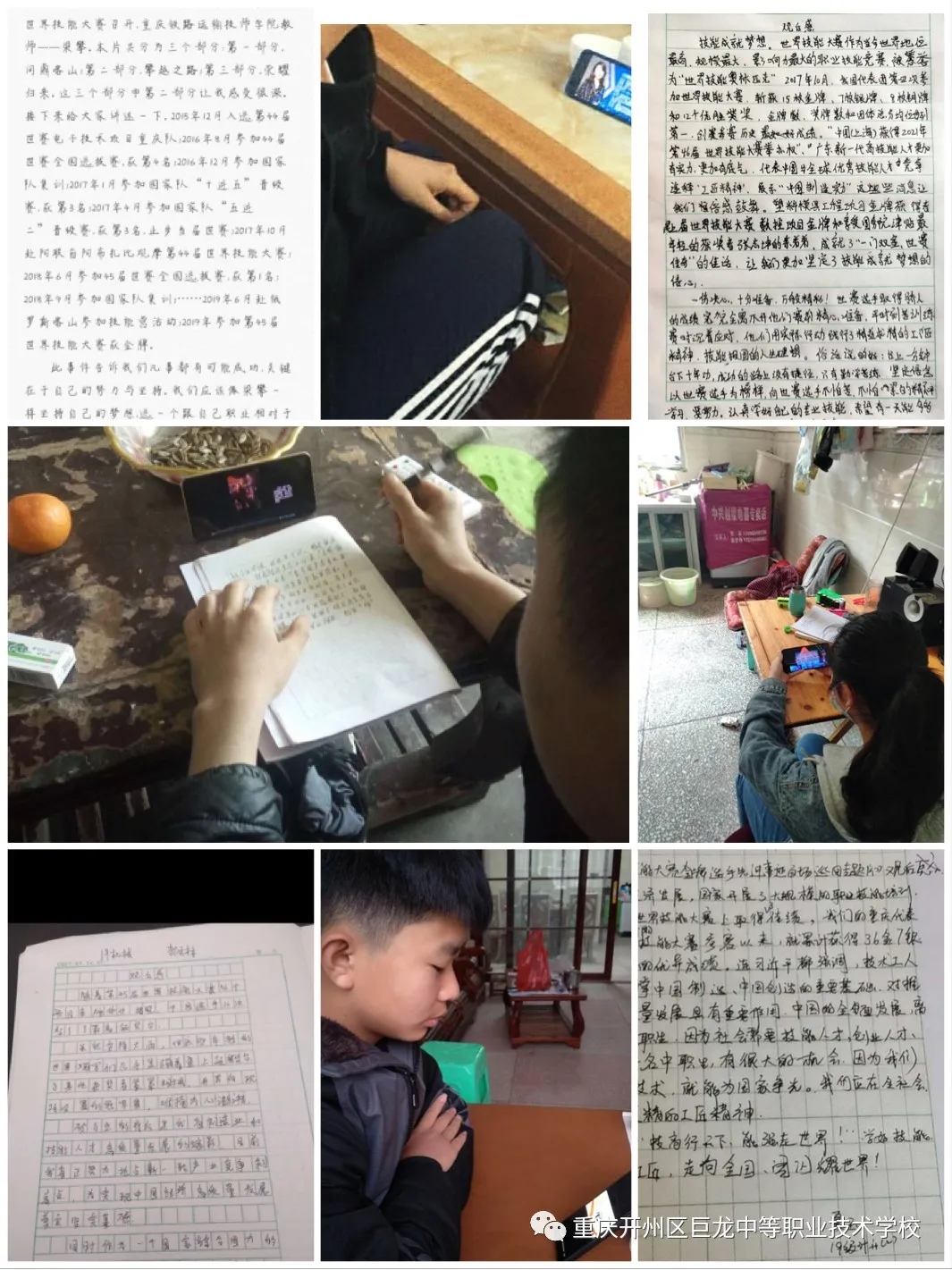 重庆市开州区巨龙中等职业技术学校全校师生线上观看世界技能大赛金牌选手先进事迹百场巡回报告会 伟大时代呼唤伟大精神,崇高事业需要榜样引领。为弘扬世赛精神,牢固树立强技、精技的技能成才思想,引导全校师生从榜样出发,践行技能成才、技能强国之路。重庆市开州区巨龙中等职业技术学校全校师生在党支部、德育处的组织下,于2020年3月18日,通过重庆蓝金领技能兴业在线培训学习平台,以线上观看学习、线下心得感悟的方式观看了世界技能大赛金牌选手先进事迹百场巡回报告会。