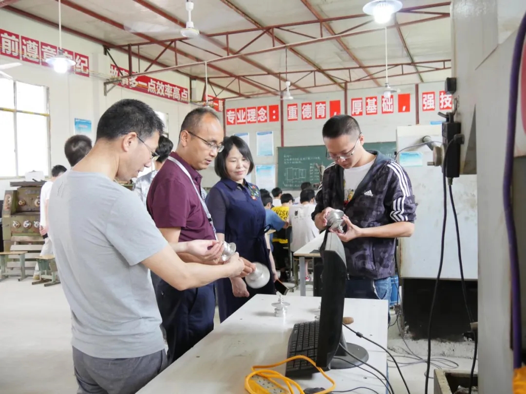 座谈会结束后,刘金红副校长陪同开江职中领导、老师参观了巨龙职校实训室