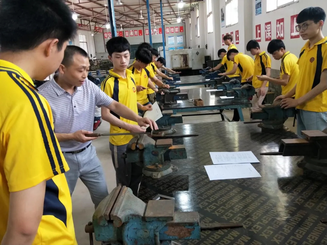 交流行动第二阶段是课堂教学展示活动,开江职中机械专业带头人邓祖财老师现场为双方老师奉献了一堂钳工展示课,供大家研讨。