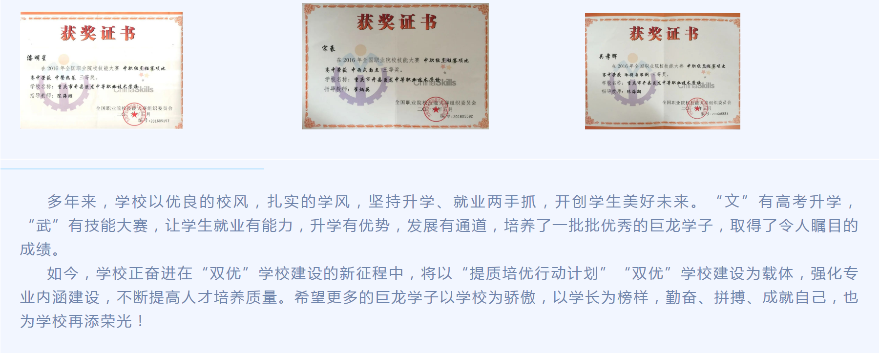 主办单位:重庆市开州区巨龙中等职业技术学校  网址:www.kxjlzx.com 热线电话:(023)52230000