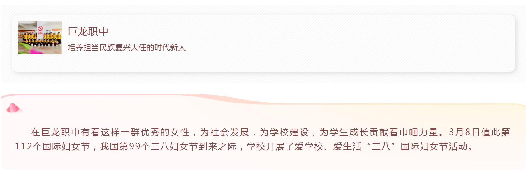 柔肩担重任 巾帼绽芳华 —我校开展爱学校、爱生活“三八”国际妇女节活动